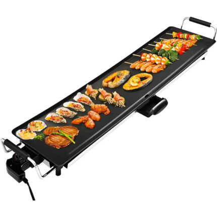 شواية كبيرة الحجم مصممة لتحضير مجموعة متنوعة من الأطعمة بسهولة واحترافية، مثل اللحوم، الخضروات، المأكولات البحرية، والبيض. يتميز سطحها غير اللاصق بطهي صحي مع تقليل استخدام الزيت وسهولة تنظيف بعد الاستعمال. توفر خاصية التحكم القابل للتعديل في درجة الحرارة مرونة كاملة أثناء الطهي، مما يسمح بضبط الحرارة حسب نوع الطعام للحصول على نتائج مثالية. المقابض المعزولة للحرارة تضمن أمانًا إضافيًا وسهولة في الحمل والاستخدام. تعد هذه الشواية مناسبة للاستخدام داخل المنزل أو في الهواء الطلق، مثل الشرفات، الحدائق، أو الرحلات العائلية. تصميمها العملي وحجمها الكبير يجعلها مثالية للعائلات والتجمعات، حيث تتيح